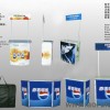促销台材质:铝合金或铁方管框架、PVC或密度板台面、PVC支杆等。
