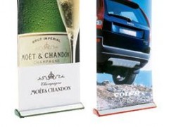 易拉宝特点:造型设计简练、轻巧便携、体积小、方便运输、容易存放、安装简单、经济实用、质量稳定 、实用性强。其材质:铝合金材质、塑钢材质,铝合金横梁、铁质或铝质支撑杆。