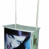 促销台又名:促销桌、铝合金促销台、PVC促销台、PS促销台、弧形促销台、半圆形促销台、拉网式促销台、拉网接待台、铁框促销台。