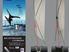 X展架方便收起、携带,可支起较大面积的喷绘画面。X展架的性价比较高,她的广告效果可以与易拉宝相媲美。