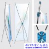 厦门奥睿X展架是一种用作广告宣传的、背部具有X型支架的展览展示用品。X展架-终端宣传促销生动化的利器,展架又名产品展示架、促销架、便携式展具和资料架等。X展架是根据产品的特点,设计与之匹配的产品促销展架,再加上具有创意的LOGO标牌,使产品醒目的展现在公众面前,从而加大对产品的宣传广告作用。